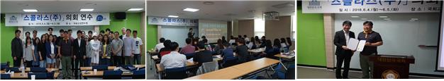 <정치부=정완태기자> 국회사무처(사무총장: 김성곤) 의정연수원이 운영하는 국회고성연수원의 ‘단체 상시 연수과정’에 6월 4일부터 5일까지 1박2일 동안 중소기업 스콜라스(주)가 참여하여 성황리에 마쳤다.