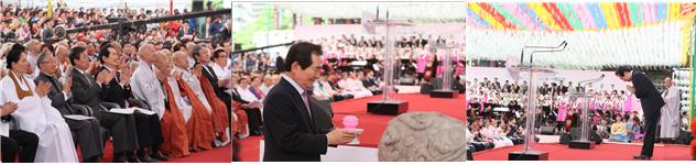 <정치부=정완태 기자> 정세균 국회의장은 22일 오전 10시 불기 2562 부처님 오신 날을 맞아 서울 종로 조계사 대웅전에서 열린 봉축법요식에 참석해 헌촉했다. 이날 봉축법요식에는 조계종 종정 진제 스님과 총무원장 설정 스님을 비롯해 정부 관계자, 여야 지도부, 이웃 종교인 등 내·외빈과 불자 1만여 명이 참석한 가운데 봉행했다.