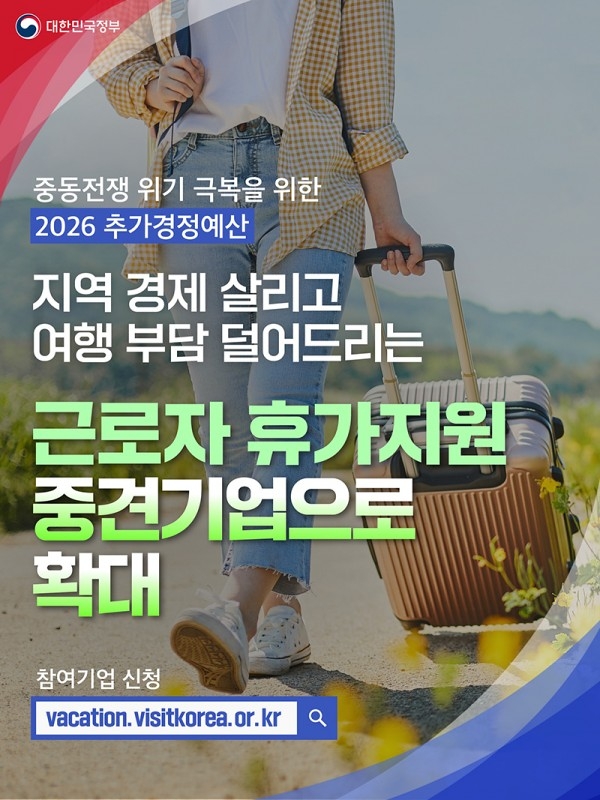 정부, 중동전쟁 위기 극복을 위한 2026 추가경정예산, 근로자 휴가 지원, 중견기업으로 확대...