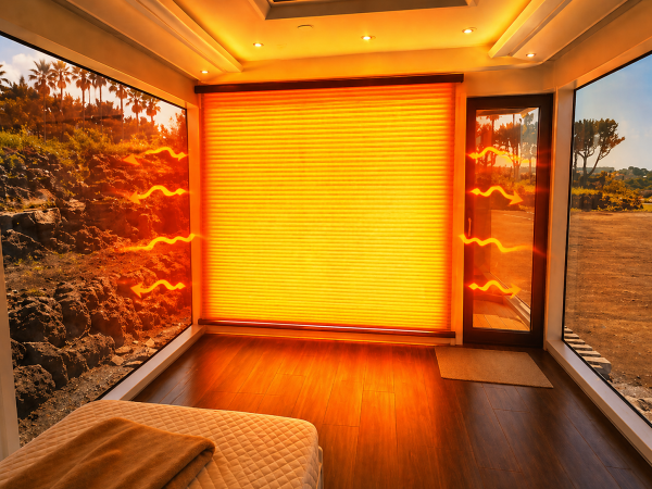 사진=카라반 내부에 발열커튼을 설치한 모습