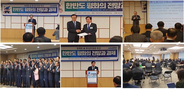 이어 정세현 전 통일부장관이 창립식에서 '한반도 평화의 전망과 과제'란 주제로 강연에서 "남북 경제협력이 동북아평화까지는 보장 못하지만 적어도 남북 군사긴장 완화와 평화정도는 보장을 하였다. 유엔제재에 저촉되지 않을 남북협력사업, 인도주의 지원 추진해나가면서 남북간 신뢰라도 구축해야 한다"고 말했다.