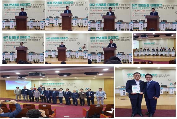 정병국 의원은 토론회 좌장으로 주관하면서 여주 반려동물 테마파크에 대해, “국내 명품 아울렛 문화를 선도한 여주 프리미엄 아울렛과 연계하여 일일 쇼핑‧관광 문화권을 형성 할 수 있을 뿐만 아니라, 도내 180만 초․중․고생을 대상으로 생명존중과 인성교육을 체험 하게 하는 장이 될 것”이라고 설명했다. 또한 본 언론사 전문기자(정병국 의원과 함께 찍은 사진)의 의견을 반영하여 다음에 사료분야 별도로 국회토론회를 추진하겠다고 하였다.