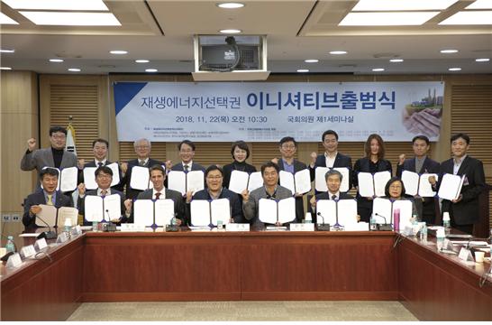 <정치부=정완태 기자> 재생에너지 사용을 확대해 기후변화 및 미세먼지 해결을 가속하기 위한 재생에너지 선택권 이니셔티브가 오늘(22일) 오전 10시 반 국회에서 출범식을 갖고 본격 활동을 시작했다.
