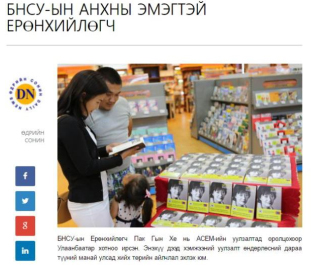 <우드링 서닝>은 16일 자서전의 몽골어판 출간 소식을 비중 있게 보도하며 박 대통령을 “강인하며 결단력이 탁월하고 유능한 한국의 첫 여성 대통령”으로 소개했다.