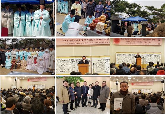 <내외매일뉴스=정완태 전문기자> 다산연구소·실학박물관·남양주시·경기도·경기문화재단·중앙일보 공동주관으로 다산 정약용(1762~1836) 선생 서세 182주기 묘제 및 헌다례 봉행, 「목민심서」저술 및 해배 200주년 기념 강연회 겸 공연이 4월 7일 다산묘소(경기도 남양주시 조안면 다산묘역)와 실학박물관 열수홀에서 열렸다.