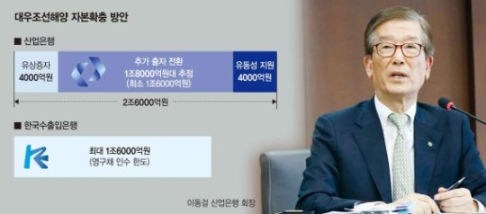 지난해 발표된 구조조정 계획에 따라 산은과 수은이 지원하기로 한 자금은 총 4조2000억원(산은 2조6000억원, 수은 1조6000억원), 산은은 이 중 2조원 규모의 자본확충을 계획했다.