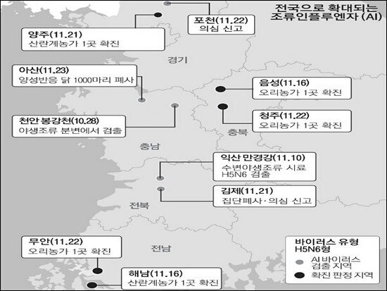 강원도까지 AI가 전파되면서 이제 제주와 영남만 청정지역으로 남아 있다.